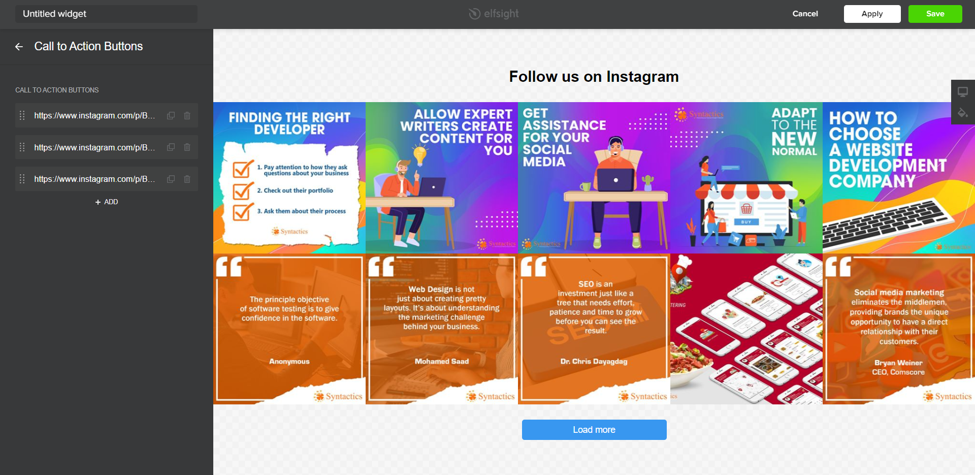 Add an Instagram Feed Edit Call to Action Buttons
