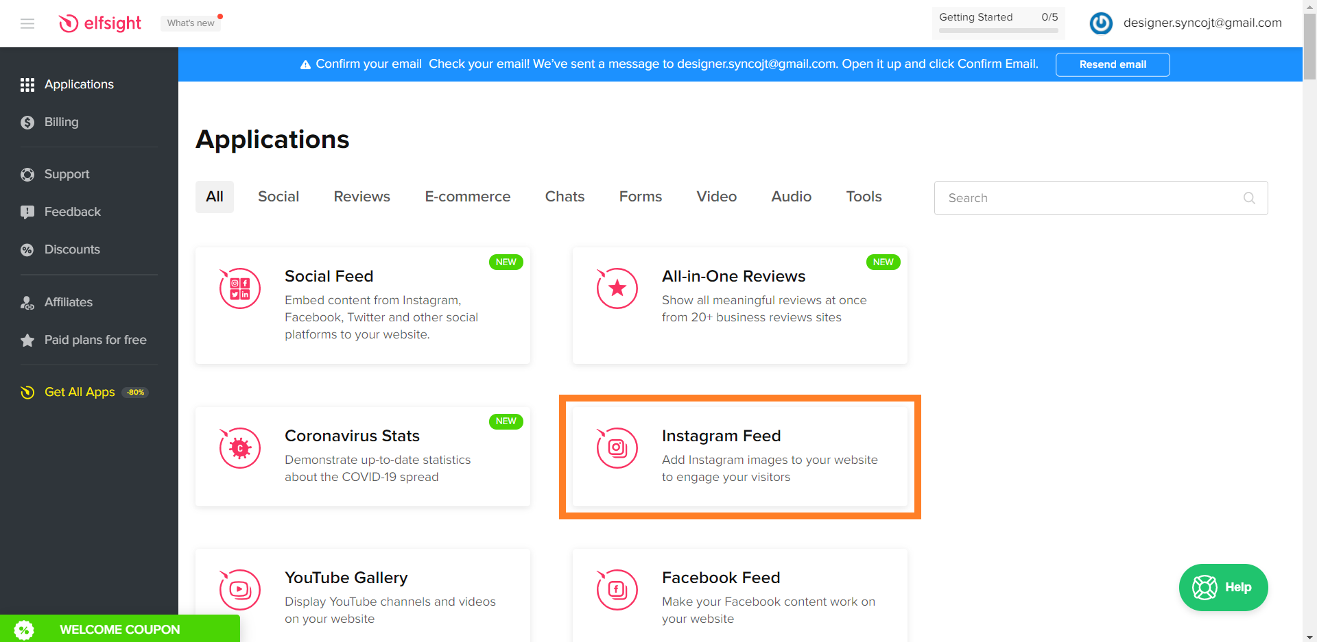 Add an Instagram Feed Sign Up for Elfsight Account